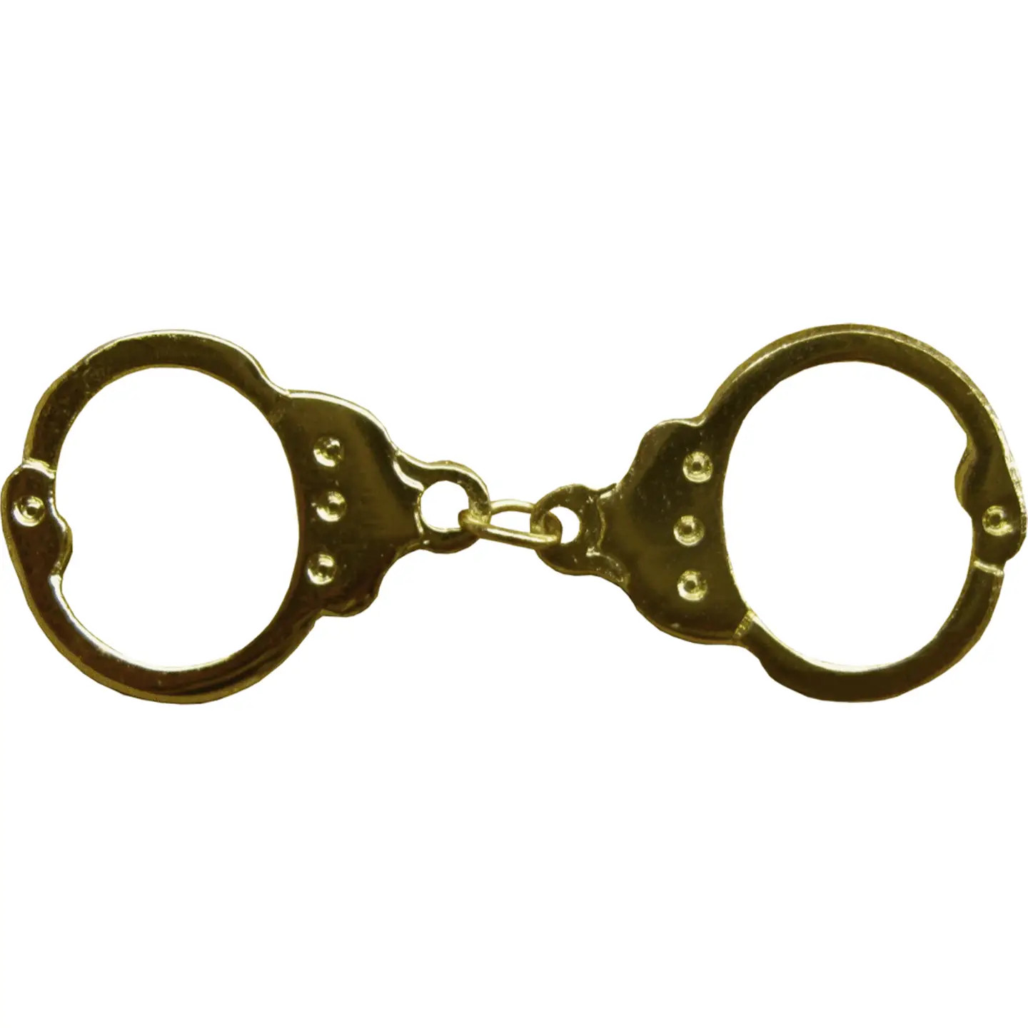 Product Details: Dimensions: 1.5 inches (width) x 0.5 inches (height) Design: Swinging handcuffs (each 3/4" x 5/8") Material: High-quality enamel with a polished finish for durability Attachment: Secure pin back for easy fastening to various fabrics