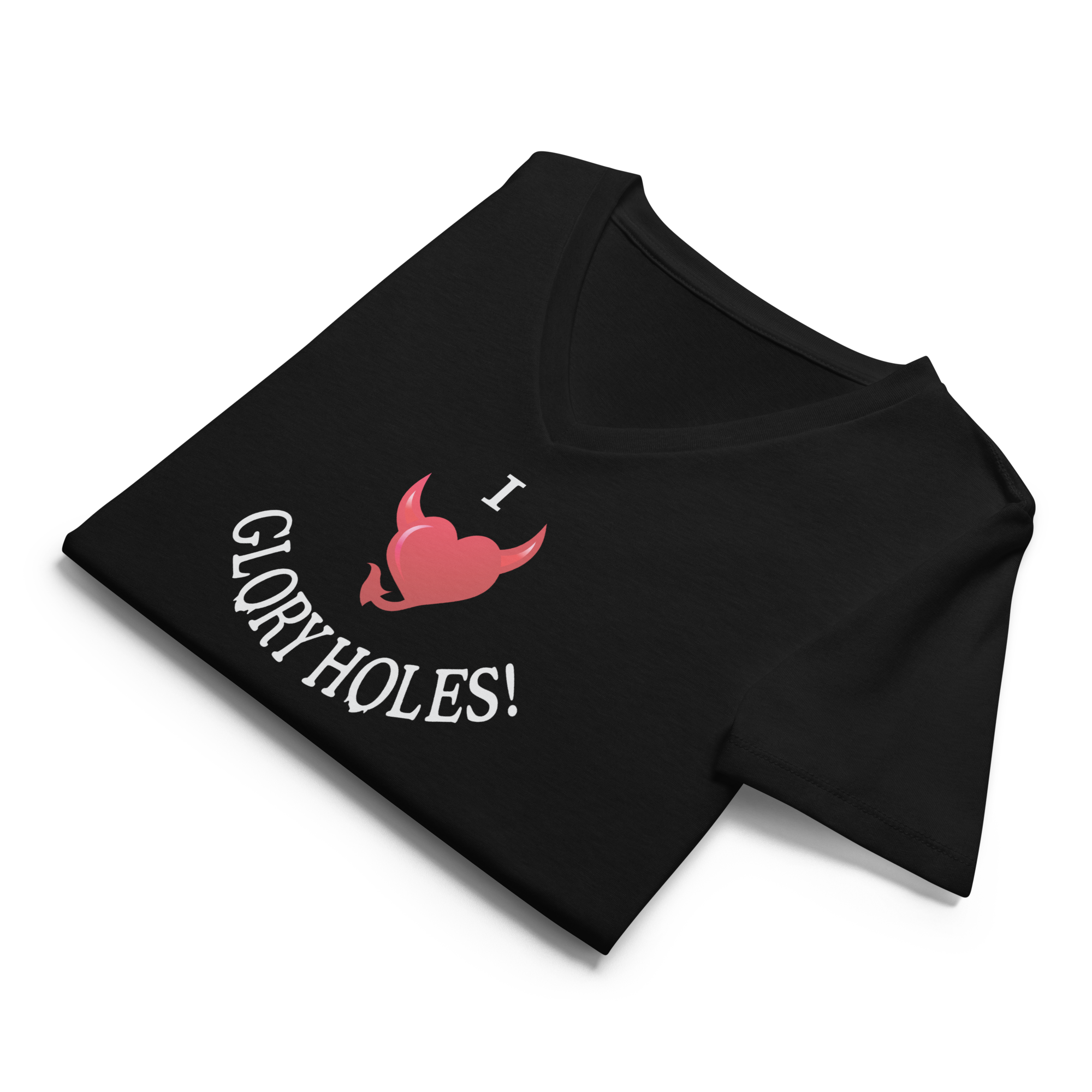 Embrace your Gloryholes Fetish with this I Love Gloryholes Swing-Gear Soft-casual Women's V-Neck Black T-Shirt.