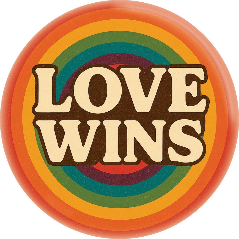 Proudly made in the USA, this button is perfect for jackets, bags, hats, or anywhere you want to spread the love. Pin it on and let everyone know that love always wins.